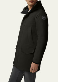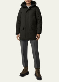 Canada Goose "Langford" parka featuring clean lines and a modern look TEI 4 is optimal for temperatures 5°F to -15°F; it is inspired by the Arctic and made for enduring daily warmth. Two-way adjustable hood Chin guard with tricot fabric for softness and comfort Two-way zip closure with storm flap Two fleece-lined hand warmer pockets Two flap pockets Two interior pockets Slim fit Interior drawcord at waist Tonal disc logo patch at sleeve Recessed rib-knit cuffs lock in heat Polyester/cotton Lining: Recycled nylon Fill: 80/20 duck down/duck feather Dry clean only Made in Canada The Thermal Experience Index (TEI) is an easy-to-understand five point system that enables you to make an informed choice in your search to find the right parka, jacket, or knitwear for your specific environment and activity. It works using a scale, in which 1 indicates the lightest insulation--jackets, lightweight down for active pursuits--and 5 indicates the warmest parkas we make, the kind trusted in the world’s harshest conditions. Online Inquiries: BGS21_NA08D| Store Inquiries: #4400716