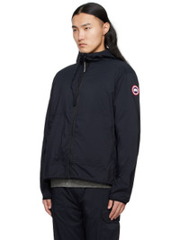 Packable nylon ripstop jacket. Wind-resistant, water-repellant, lightweight, and durable. · Drawstring at hood · Funnel neck · Zip closure · Patch pockets · Elasticized hem and cuffs · Embroidered logo patch at sleeve · Unlined Supplier color: Black 100% polyamide. Made in Albania 251014M180011