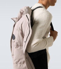 Built for the adventurer, Canada Goose’s Black Label reintroduces iconic styles with elevated details, including the signature black disc. Water-repellent, the quilted Bayview down jacket features a snap-button placket, ribbed trims, and a drawstring hem. Product Details - Material: 84% polyester, 16% cotton - Care instructions: dry clean - Made in Canada - Designer color name: Limestone - Item color: gray - Lining: 100% polyamide - Filling: 80% down, 20% feathers - Contains non-textile parts of animal origin - Closure: two-way zipped front with snap-button fastenings - Pockets: snap-buttoned pockets, internal pockets - Cuff: ribbed - Drawstring at the hem for adjustable fit - Item number: P01067112 Size & Fit - True to size - Dropped shoulders - Straight fit - Adjustable hem - Non-stretchy fabric - Falls to the hip - The model in the picture is 185cm-6'1" and wearing a size L