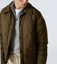 Product Details - Material: 100% polyamide - Care instructions: machine wash cold - Made in Canada - Designer color name: Military Green - Closure: snap-buttoned front - Pockets: zipped pockets - Lining: 100% polyamide - Lining II: 100% polyamide - Filling: 90% down, 10% feathers - Contains non-textile parts of animal origin - Item number: P01010084 Size & Fit - True to size - Straight fit - Non-stretchy fabric - Falls to the hip - The model in the picture is 185cm-6'1" and wearing a size L