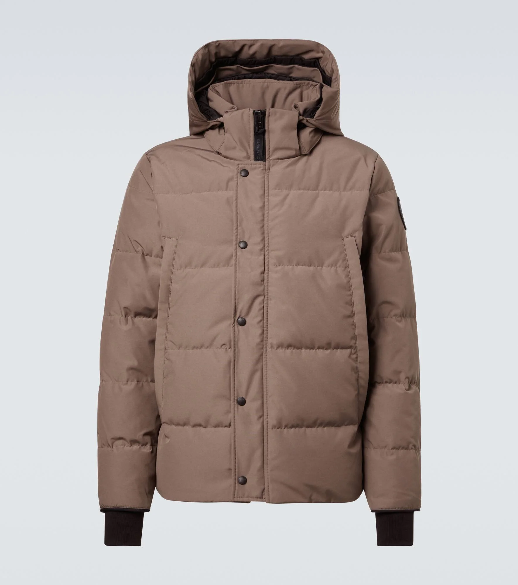Built for the adventurer, Canada Goose’s Black Label reintroduces iconic styles with elevated details, including the signature black disc. The Wyndham down jacket features a detachable drawstring hood, practical pockets, and ribbed cuffs. Product Details - Material: 84% polyester, 16% cotton - Care instructions: dry clean - Made in Canada - Designer color name: Taupe Grey - Item color: brown - Lining: 100% polyamide - Filling: 80% down, 20% feathers - Contains non-textile parts of animal origin - Closure: two-way zipped front with snap-button fastenings - Detachable drawstring hood - Pockets: zipped pockets, internal pockets - Cuff: ribbed - Item number: P01067116 Size & Fit - True to size - Straight fit - Non-stretchy fabric - Falls below the hip - The model in the picture is 185cm-6'1" and wearing a size L