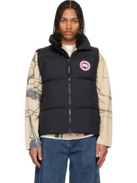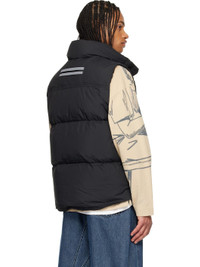 Down-filled and quilted recycled nylon taffeta vest. · Water-repellent · Stand collar · Two-way zip closure · Embroidered logo patch at chest · Zip pockets at waist · Reflective trim at back · Zip pocket at interior · Fully lined Supplier color: Black Body: 100% polyamide. Fill: 90% duck down, 10% duck feathers. Lining: 100% polyester. Made in Canada 252014M178012