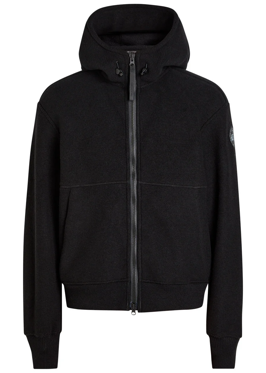 Info & Care Canada Goose fleece jacket; Hooded, high neck, dropped shoulders, designer plaque at sleeve, zip-fastening slip pockets at front, ribbed hems; Two-way zip fastening through front; 60% recycles wool, 16% lyocell, 13% polyester, 8% polyamide, 3% other fibres Dry clean; Size & Fit Length shoulder to hem: 25 inches/ 63.5cm; Midweight Relaxed fit Model is 6'2"/ 188cm, chest size 38 inches and wears a size medium