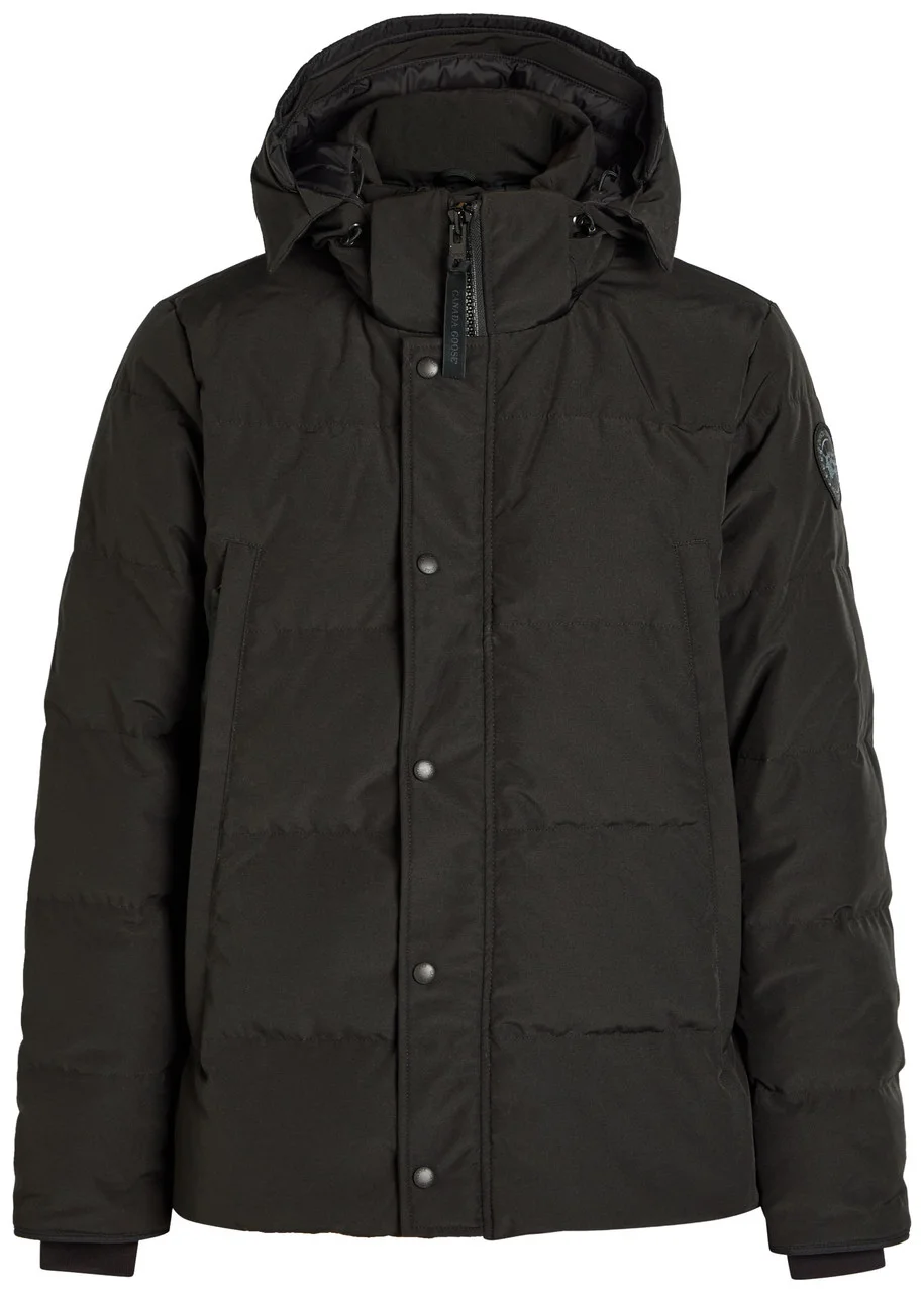 Style Notes Canada Goose's Wyndham parka is made from the label's high-performing and weather-resistant Arctic-Tech shell. Cut to a slim fit, this down-quilted style is designed with a detachable drawstring hood, ribbed cuffs to lock in the heat and internal shoulder straps making it easy to carry when out and about.; Info & Care Canada Goose Arctic-Tech shell parka; Canada Goose Thermal Index 3 (fundamental) Designed for temperatures between -10°C and -20°C Water-resistant, quilted, detachable drawstring hood at high-neck, designer plaque at sleeve, ribbed cuffs underlay, two zip-fastening pockets, internal zip-fastening pocket, two internal mesh pockets, internal harness shoulder straps, fully lined; Concealed press-stud and zip fastening front; 84% polyester, 16% cotton; lining: 100% polyamide; fill: 80% down, 20% feathers (white duck) Dry clean; Size & Fit Length shoulder to hem: 27.5 inches/ 70cm Midweight; Relaxed, boxy;fit; Model is 6'1"/ 185cm, chest size 36 inches and wears a size medium