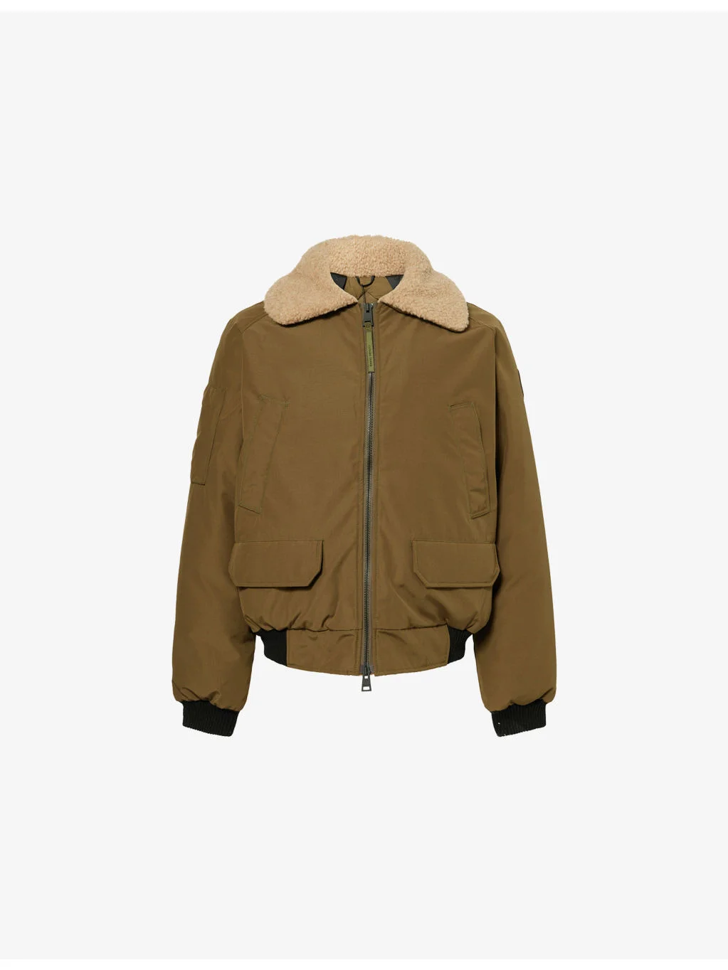 PRODUCT DETAILS - Canada Goose woven-down jacket - 84% polyester, 16% cotton; contrast 52% wool, 40% polyester, 4% polyamide, 4% other fibres; filling 90% duck down, 10% duck feather; lining 100% polyamide - Exposed zip fastening at front - Relaxed fit, fur wide collar, raglan long sleeves, zip pocket at sleeve, four buttoned pockets at front, all-over padded, fully lined, ribbed trims - Dry clean - Size large: length 26in / 66cm, chest 46in / 117cm - Model is 6ft 2in/1.88m and wears a size large - Lightweight, stretchy Ref: R04534989