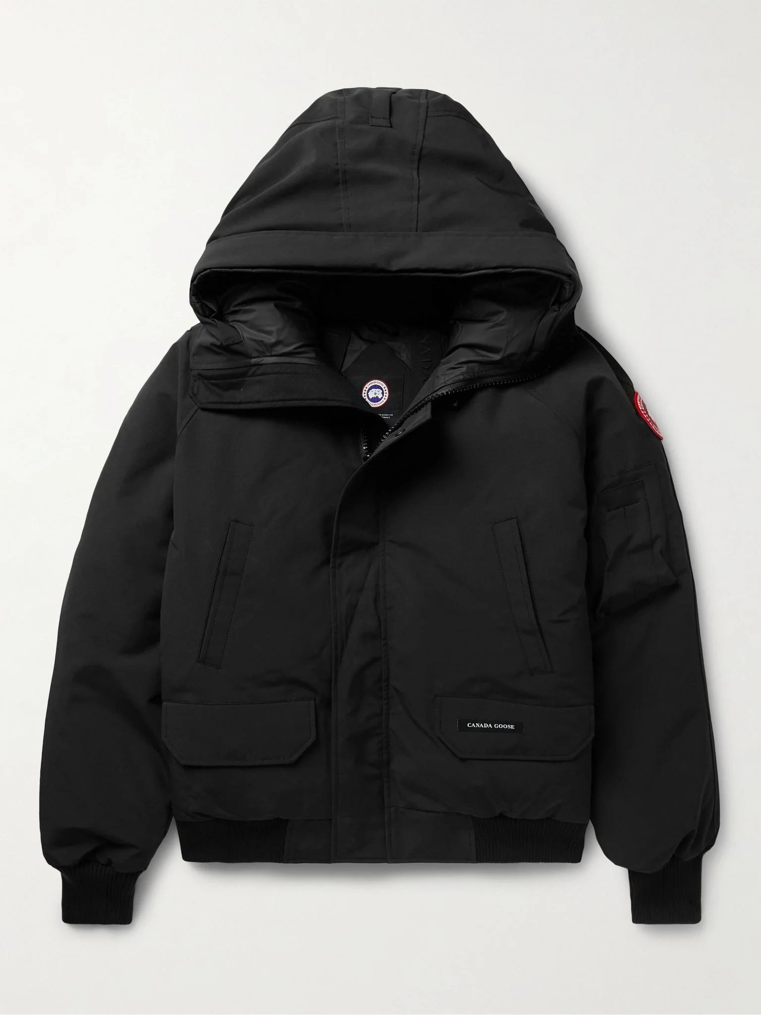 Canada Goose originally developed its best-selling 'Chilliwack' jacket for bush pilots working on Arctic runways. Reinforced along the elbows for durability, this bomber-inspired style is made from durable, water-repellent Arctic Tech® and filled with insulating down. Carry it like a backpack using the webbing shoulder straps if it gets too warm. Size & Fit - Fits true to size. Take your normal size - Designed for a regular fit - Ribbed hem - Padded, non-stretchy fabric - Model is shown wearing a M - Model measures: chest 38"/ 96cm, height 6'2"/ 188cm Details & Care - Black Arctic Tech® - Snap and two-way zip fastening - 84% polyester, 16% cotton; filling: 80% down, 20% feathers (Duck); lining: 100% polyamide - Dry clean