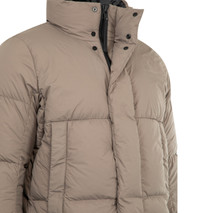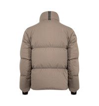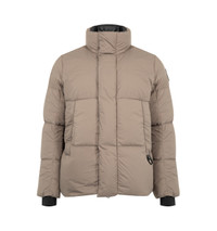 CANADA GOOSE Everett Hooded Puffer featuring recessed rib-knit cuffs, placket overtop two-way zipper, hem with interior drawcord, two exterior pockets: fleece-lined handwarmer pockets with zipper closures and three interior pockets: two mesh drop-in pockets, one security pocket. 100% recycled nylon. DESIGNER STYLE ID: 2613MB COLOR: 9394 TAUPE GREY