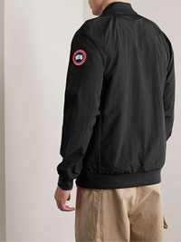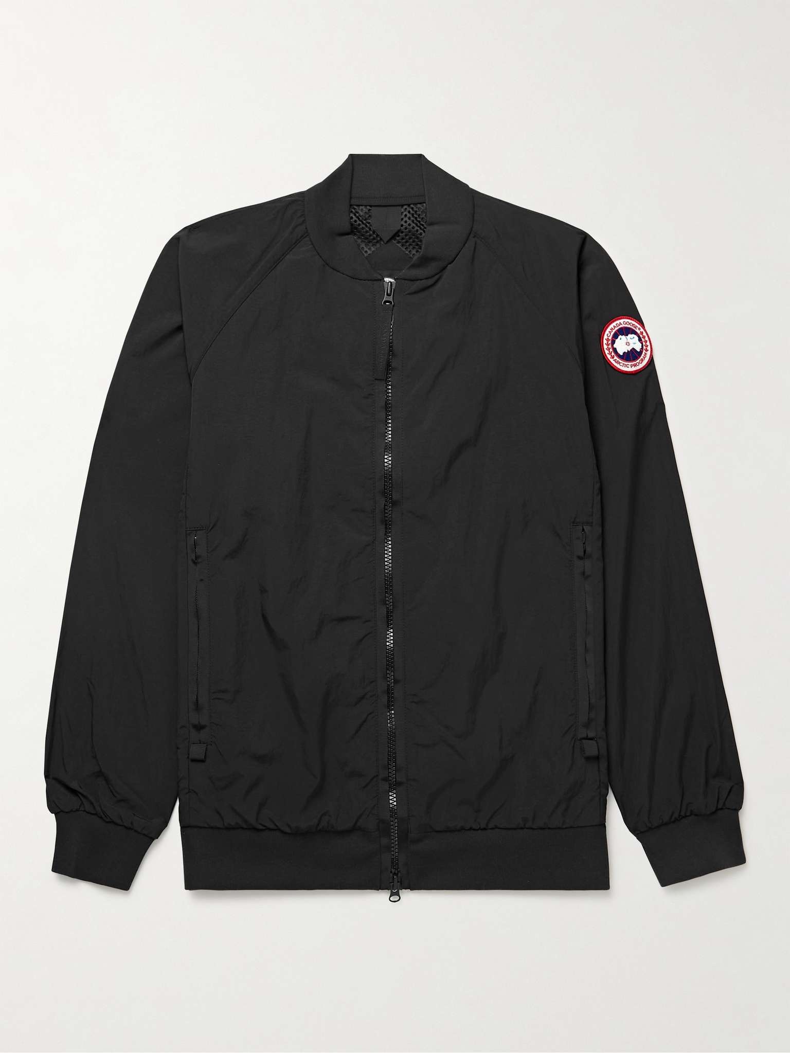 Canada Goose's 'Faber' jacket has the technical aspects of a windbreaker and the sleek profile of a bomber. Cut from water- and wind-resistant AcclimaLuxe shell with an intentionally crinkled texture, it has reflective strips for visibility in the dark and a breathable mesh lining. Size & Fit - Fits true to size. Take your normal size - Designed for a regular fit - Ribbed hem - Lightweight, breathable, non-stretchy fabric - Model is shown wearing a M - Model measures: chest 38/ 96cm, height 6'2"/ 188cm Details & Care - Black AcclimaLuxe shell and grosgrain - Two-way zip fastening - 100% polyamide; lining: 100% polyester - Machine wash