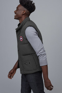This exceptional, down-filled vest is the ultimate layering piece that can be worn across all seasons. A classic, and versatile vest that is a well-insulated layer. FEATURES - An update to a Canada Goose favorite, this version is a slimmer fit with a rounded collar - Suede tricot lined collar for warmth and comfort - Storm flap over center front zipper secured with snap buttons to keep out drafts - Maximum storage with unique triple-function layered pockets and an interior security pocket