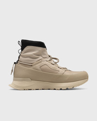 The Glacier Trail High Top Sneaker by Canada Goose is a waterproof and versatile trail sneaker with extra protection and comfort for all seasons. - Stretch-collar upper with central waterproof zipper - Interior laminated with innovative HDry membrane - Lightweight midsole with TPU heel stabilizer for improved fit and heel support - Durable outsole with multidirectional tread for optimal grip and flexibility on any surface - Insole lined with onSteam, a 100% breathable microfiber - Each pair comes with two sets of laces: Round & Reflective Hiking Laces and Versatile Flat Laces, both with hydro treatment for enhanced water resistance. Article Number: 7786M-1238 Gender: Men Color: TAN/FOSSIL - CHINE TAN/FOSSILE Material: 30% Rubber, 70% Nylon/Leather