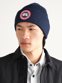 Canada Goose's beanie is knitted from merino wool that's soft and warm, so you can rely on it as soon as the leaves begin to fall. It's appliqued with the brand's iconic 'Arctic Program' embroidered logo patch. Size & Fit This item's measurements are: Details & Care - Navy merino wool - Appliqued designer emblem - 100% merino wool - Dry clean