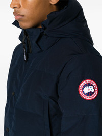 Wyndham hooded down parka A 'Heritage style', Canada Goose's Wyndham hooded down parka is specifically designed for temperatures below zero. Considered a fundamental item for -10ºC to -20ºC, the down jacket has ribbed-knit cuffs to block out the cold wind and a wide selection of customisable trims to extend hood coverage. Highlights - Navy blue - Down-feather filling - Logo patch at the sleeve - Padded design - Funnel neck - Detachable drawstring hood - Front press-stud and zip fastening - Long sleeves - Ribbed cuffs - Internal zip-fastening pocket - Two internal slip pockets - Interior backpack straps - Straight hem - Full lining Imported Composition Polyester 84%, Cotton 16% Lining: Polyamide 100%, Duck Down 80%, Duck Feathers 20% SIZE & FIT Model measurements Height 6 ft 1 in(1.85 m) Bust/Chest 38.58 in(98 cm) Hips 37 in(94 cm) Waist 30.31 in(77 cm) Measurement CHEST 43.3 in(110 cm) SLEEVE LENGTH 26.37 in(67 cm) LENGTH 27.95 in(71 cm) WAIST 43.3 in(110 cm) FittingInformation Designed for a slim fit, offering a comfortable fit that sits just away from the body Made from a padded non-stretch fabric, giving it no natural elasticity This piece fits true to size – take your usual size Washing instructions Dry Clean Only