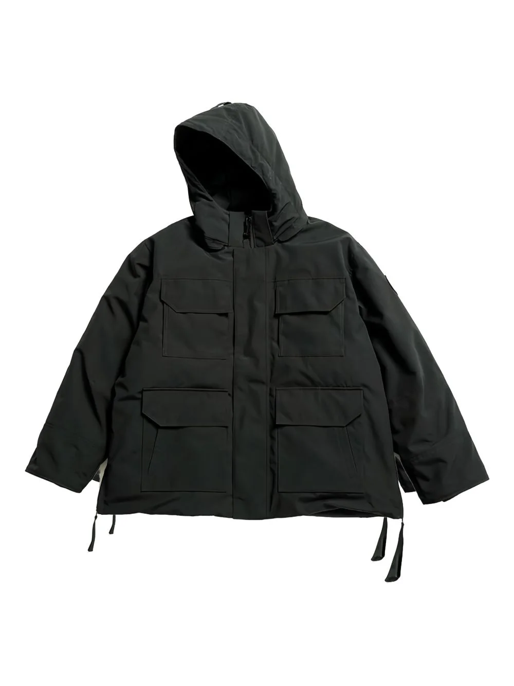 hooded pocket jacket Highlights - Black - Hooded - Front flap pockets - Drawstring hem - Long sleeves - Concealed zip fastening Imported Composition Fabric 100% Washing instructions Read Manufacturer Guidelines
