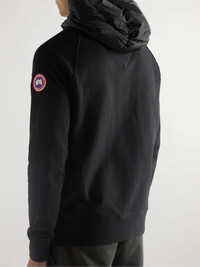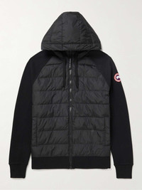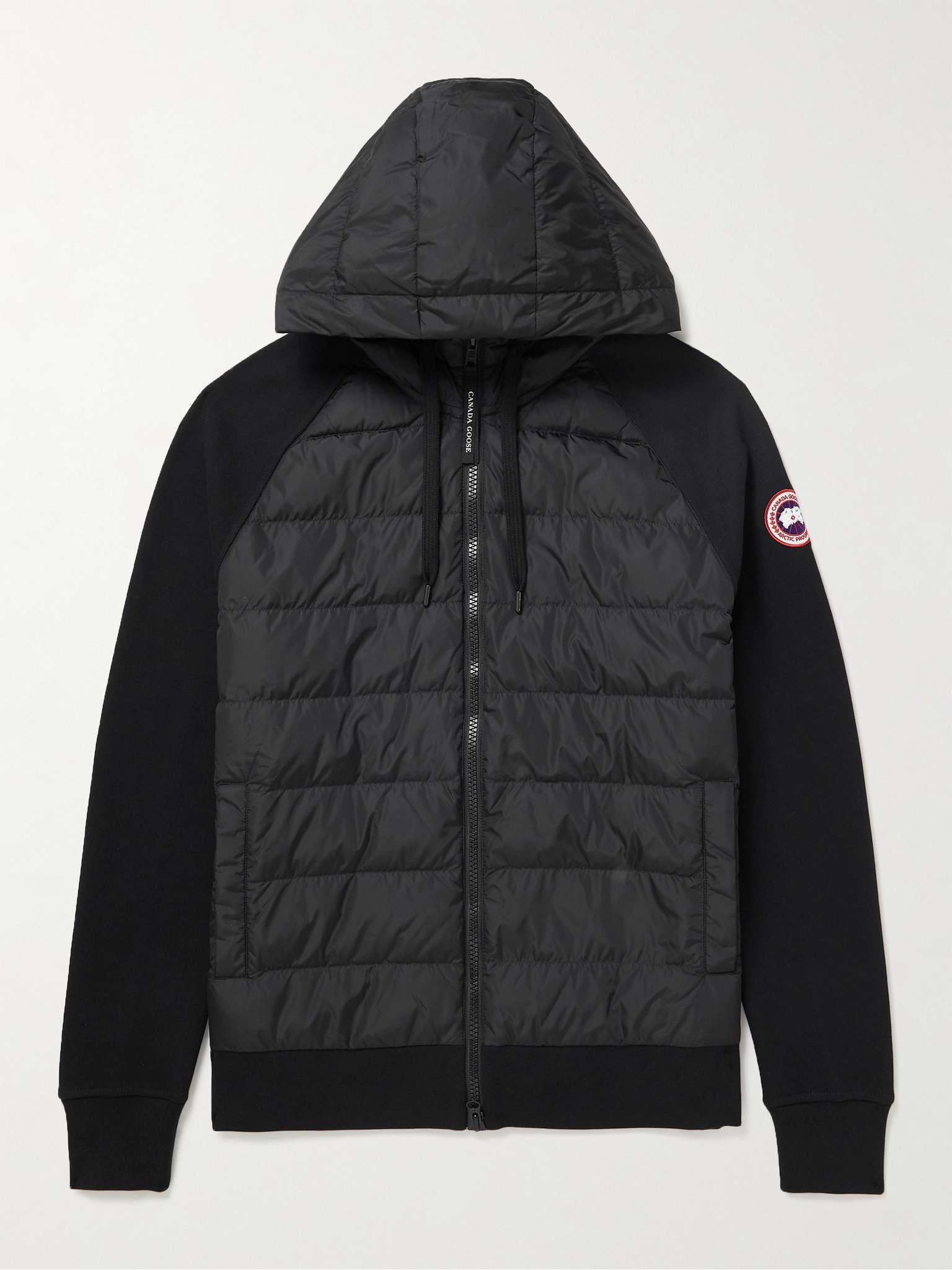Canada Goose's 'HyBridge Huron' jacket is perfectly attuned to cold weather no matter your location. Made from shell and cotton-jersey, it's padded and quilted with strategically placed down. The articulated cuffs and hem provide ample insulation. Size & Fit - Fits true to size - This jacket is designed for a regular fit - Mid-weight, breathable, stretchy fabric with quilted front panels - Model takes a M but is wearing a L to achieve a relaxed fit - Model measures: chest 38"/ 96cm, height 6'2"/ 185cm Details & Care - Black shell and cotton-jersey - Zip fastening - 100% cotton, 100% polyamide; lining: 100% polyamide; filling: 80% down, 20% feathers (Goose) - Dry clean - This item has been imported