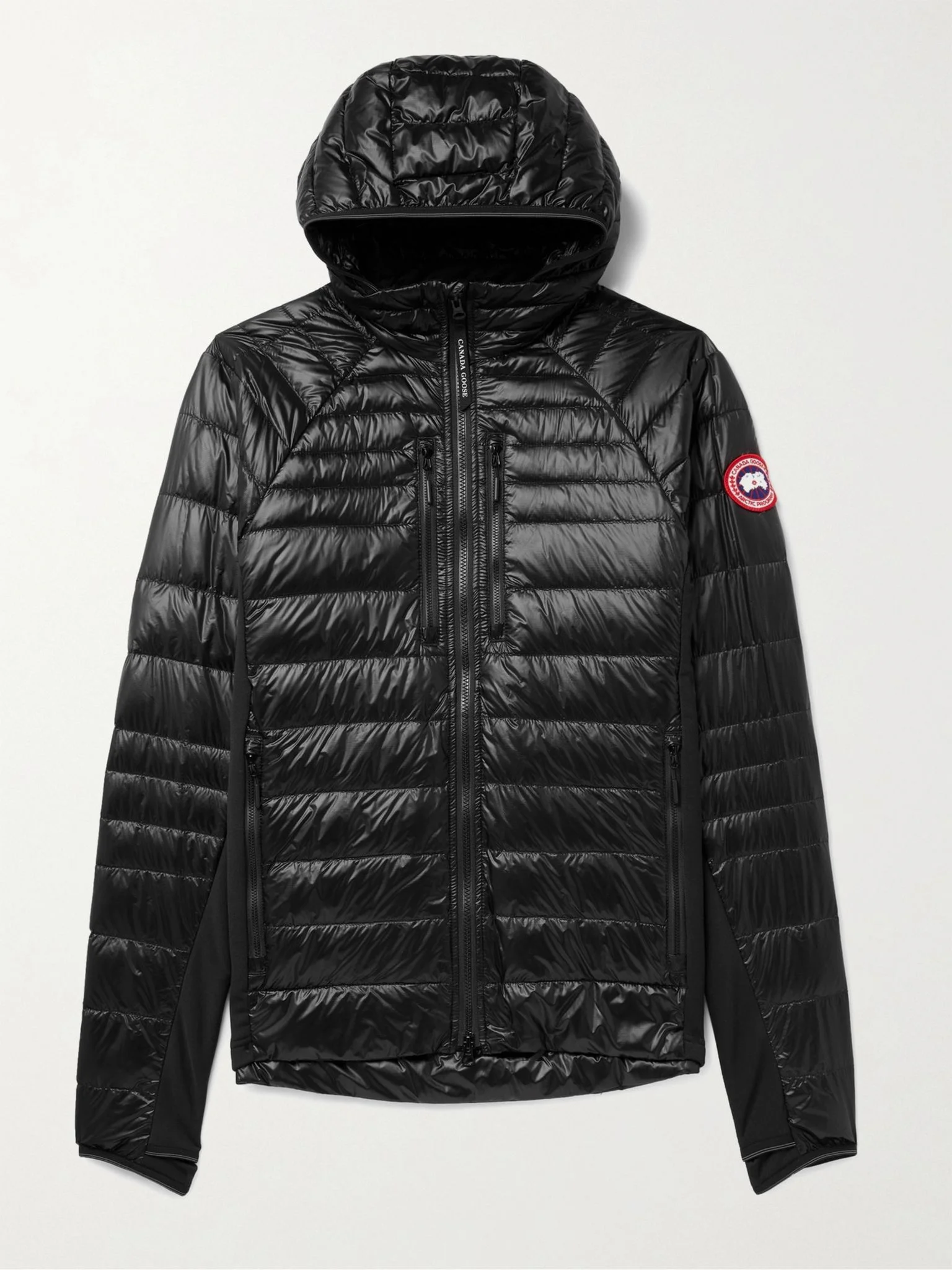 Canada Goose's 'Hybridge Lite' down jacket packs a surprising amount of insulation for its mass. It's cut from water-repellent 'Feather-Light 10D®' shell, which is panelled with Tensile-Tech™ mesh through the underarms and sides for ventilation and flexibility. A chin guard and thumbhole cuffs enhance warmth. Size & Fit - Fits true to size. Take your normal size - Those with broad shoulders may wish to take the next size up - This jacket is designed for a slim fit - Padded, non-stretchy fabric - Model wears a M - Model measures: chest 38"/ 96cm, height 6'2"/ 188cm Details & Care - Black shell - Reflective tape-trimmed hood, chin guard, Tensile-Tech™ mesh panels, appliqued designer emblem, thumbholes, four front zipped pockets, fully lined - Two-way zip fastening - 100% nylon - Machine wash