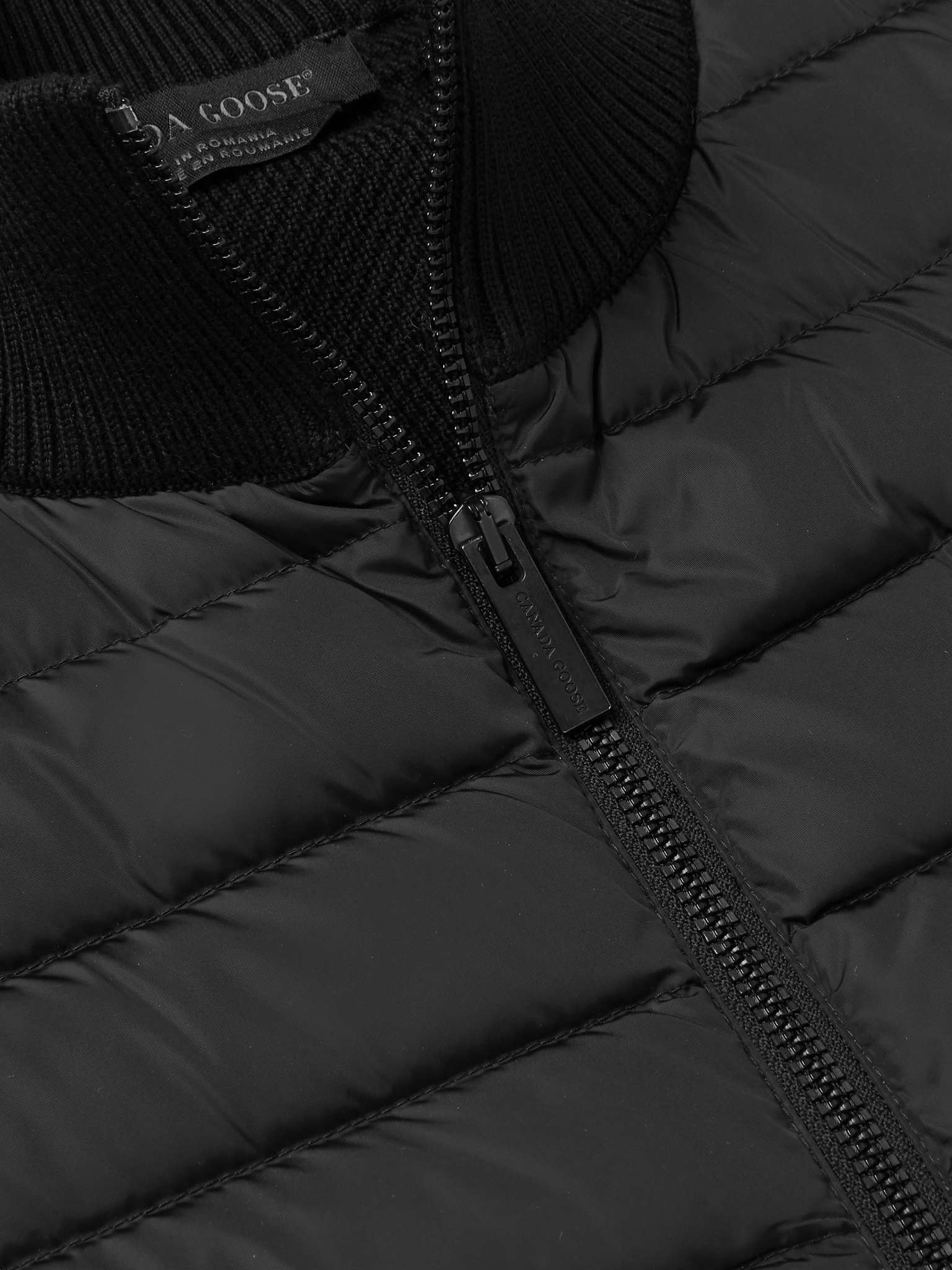 Canada Goose's 'HyBridge' gilet is panelled from technical nylon and merino wool, which helps with temperature regulation to keep you comfortably insulated. It's packed with a lightweight 675-fill down that's evenly dispersed and thermal-mapped to ensure warmth and breathability where you need them most. Wear it as outerwear during the autumn, layering a heavier coat on top when the real winter hits. Size & Fit - Fits true to size. Take your normal size - The model is wearing a size larger to achieve a looser fit - This gilet is designed for a slim fit - Quilted, non-stretchy fabric - Model wears a L - Model measures: chest 38"/ 96cm, height 6'2"/ 188cm Details & Care - Black merino wool and nylon - Funnel neck, appliquéd designer emblem, on-seam zipped pockets, ribbed trims, partially lined - Zip fastening - Fabric1: 100% merino wool; fabric2: 100% nylon; filling: 80% down, 20% feathers (Goose); lining: 100% nylon - Dry clean