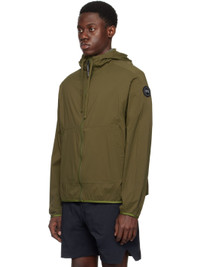 Nylon ripstop jacket. · Drawstring at hood · Funnel neck · Zip closure · Patch pockets · Elasticized hem and cuffs · Embroidered logo patch at sleeve · Unlined Supplier color: Military green 100% polyamide. Made in Albania 242014M180000