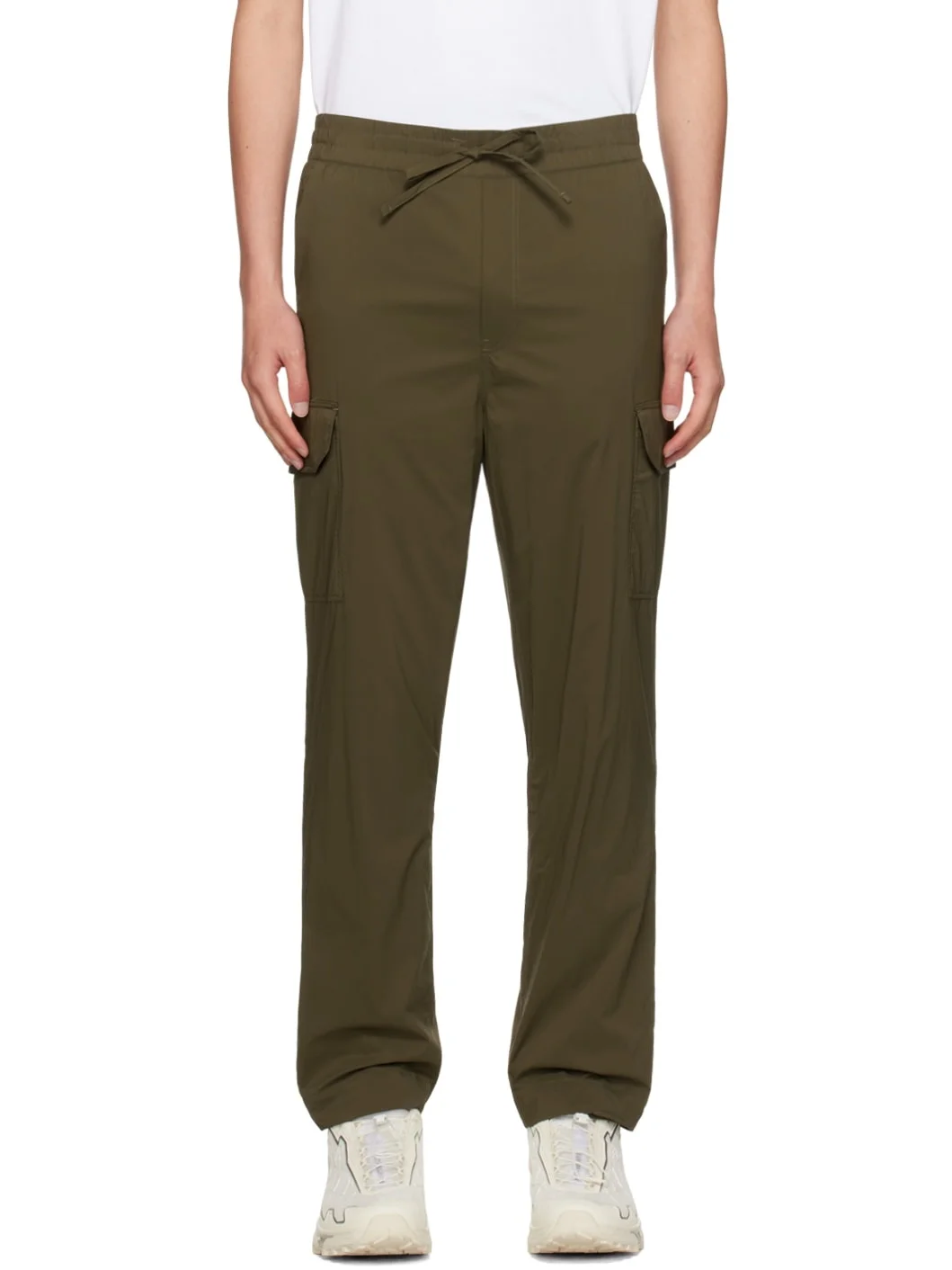 Packable nylon taffeta trousers. Windproof. · Drawstring at elasticized waistband · Two-pocket styling · Mock-fly · Flap pocket at outseams · Concealed zip pocket at back · Embroidered logo patch at back · Full mesh lining Part of the Black Label collection. Supplier color: Military green Body: 100% polyamide. Lining: 100% polyester. Made in Albania 242014M191000