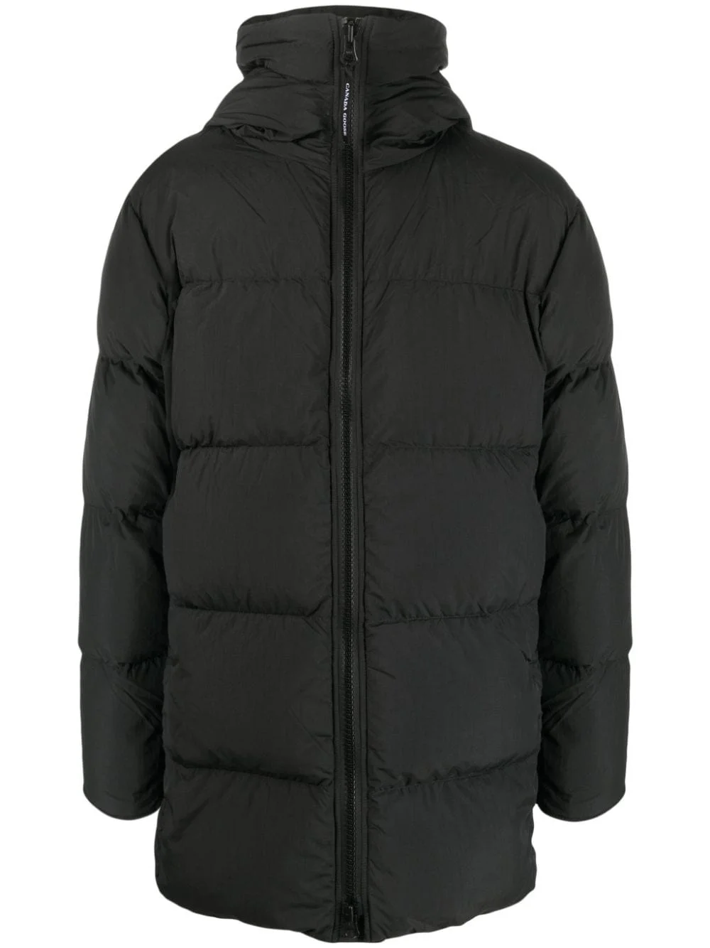 Lawrence padded down parka Renowned for its innovative outerwear, Canada Goose continues to showcase its expert craftsmanship with the Lawrence parka. Imagined in black, this design illustrates the brand's ability to combine functionality with style. Insulated with duck feathers, this coat is equipped with a classic hood for added practicality. Highlights - Black - Duck down - Padded design - Quilted - High neck - Front zip fastening - Long sleeves - Logo patch at the sleeve - Two side inset pockets - Straight hem Imported Composition Lining: Polyester 100%, Duck Down 90%, Duck Feathers 10% Outer: Polyamide 100% SIZE & FIT Model measurements Height 6 ft 2 in(1.88 m) Bust/Chest 36.61 in(93 cm) Hips 35.82 in(91 cm) Waist 27.95 in(71 cm) Measurement CHEST 46.45 in(118 cm) SLEEVE LENGTH 35.03 in(89 cm) Shoulder Width 20.07 in(51 cm) WAIST 46.06 in(117 cm) FittingInformation Designed to be unstructured, offering a loose fit throughout Made from a padded non-stretch fabric, giving it no natural elasticity This piece fits true to size – take your usual size Washing instructions Machine Wash