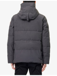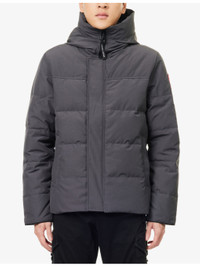 PRODUCT DETAILS - Canada Goose down jacket - 85% polyester, 15% cotton; filling 80% duck down, 20% duck feather; lining 100% nylon - Concealed popper and zip fastenings at front - Funnel neck, drawstring hood, long sleeves, brand badge at sleeve, ribbed elasticated cuffs, two -zip fastening welt pockets at front, branded hardware, all-over padded and quilted, fully lined, interior pockets - Dry clean only - Made in Canada - Size medium: Length 26in / 66cm, chest 40in / 101.5cm - Model is 6ft 2in/1.88m and wears a size medium - Midweight, non-stretch Ref: R04534988