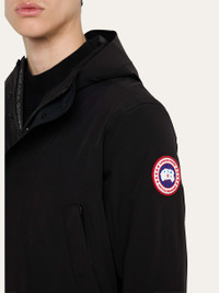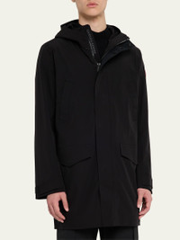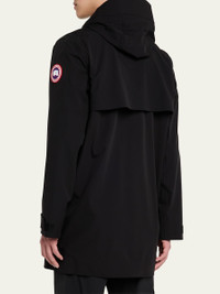 Canada Goose "Barclay" rain jacket Fully seam-sealed construction keeps rain out Fixed two-way adjustable hood with helmet compatibility Center front zipper with windguard and reflective wordmark Four exterior pockets: two chest welt pockets and two flap pockets Disc logo patch on left sleeve Nylon/polyamide/elastane Machine wash cold Made in Portugal Online Inquiries: BGS21_NCYC6| Store Inquiries: #4975892