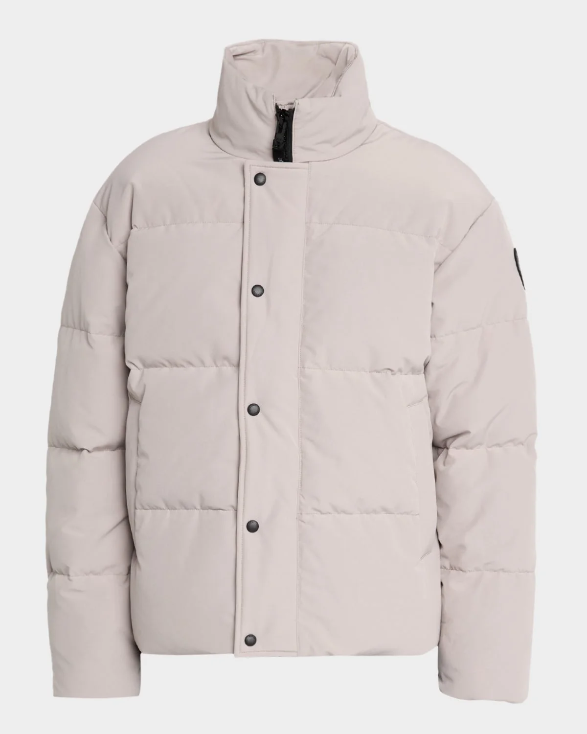 Canada Goose "Bayview" puffer coat with black disc logo on left sleeve TEI 2 is optimal for temperatures 32°F to 5°F Features backpack straps for handsfree carrying Stand collar with a brushed tricotlined chin guard Long sleeves; ribbed knit cuffs Snapconcealed twoway zip front Side fleecelined pockets with snap closures Two inner mesh dropin pockets; one zippered security pocket Regular fit Hip length Polyester/organic cotton Fill: Nylon Dry clean Made in Canada