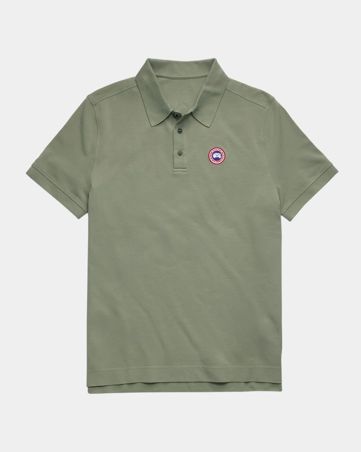 Canada Goose "Beckley" polo shirt in organic cotton pique Spread collar; threebutton placket Logo patch at chest Short sleeves Pullover style Machine wash cold, line dry, wash inside out Made in Portugal