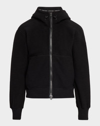 The "Chilliwack" bomber jacket by Canada Goose is cozy and breathable, crafted from Kind Fleece-a nextgeneration fleece to help keep the planet cold and the people on it warm. Fixed hood with adjustable drawcord Two side zip pockets Left sleeve logo patch Ribbed cuffs and hem Reinforced highabrasion areas Wool/lyocell/polyester Dry clean Made in Canada