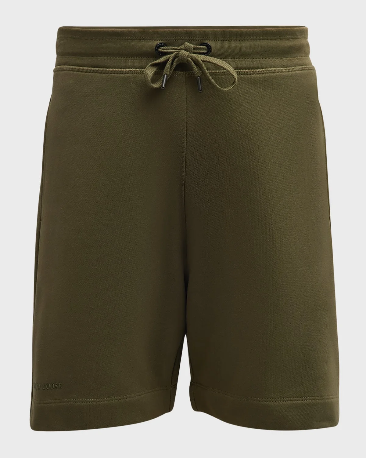 - Made with 100% cotton for softness and breathability, the Huron is your go-to for function and versatility. - Canada Goose "Huron" shorts in medium-weight cotton - Rib-knit waist provides a tailored fit - Drawcord with branded eyelets - Two front hand pockets - One right back pocket - Relaxed legs - Tonal logo at front right hem - Dry clean, machine wash cold, line dry - Made in Italy - Model is 6'1"/185cm.