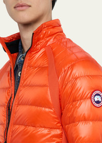 Canada Goose "HyBridge® Lite" weightless, fitted jacket Thermal Mapping® technology for warmth, breathability and movement Flex points for enhanced fit and range of motion Tricot-lined collar; signature double-stripe reflective details at back Storm flap underneath 2-way zipper Two exterior pockets: hand pockets with zipper closures, lined with mesh for added ventilation Two interior pockets: lower drop-in pockets Cuffs with discreet thumbholes Reflective stitching on cuffs Packable into pocket Goose down fill Nylon/polyamide Machine wash cold Made in Canada Online Inquiries: BGS21_NCYD1| Store Inquiries: #4975926