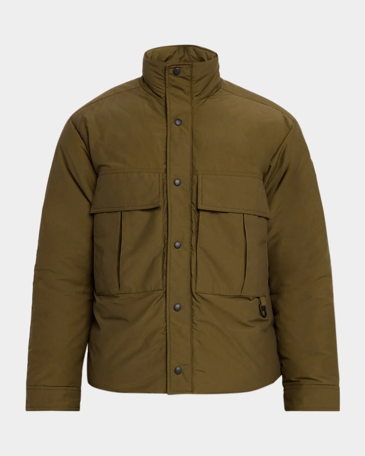 The "Kirby" jacket by Canada Goose in matte ripstop, crafted from recycled nylon and organic cotton. Stand collar Snap placket Two doubleentry patch pockets Elbow patches for durability in highwear areas Left sleeve tonal logo patch Snap cuffs 32°F to 5°F temperature rating Nylon fill Cotton/nylon/polyamide Machine wash cold, line dry, wash inside out Made in Canada