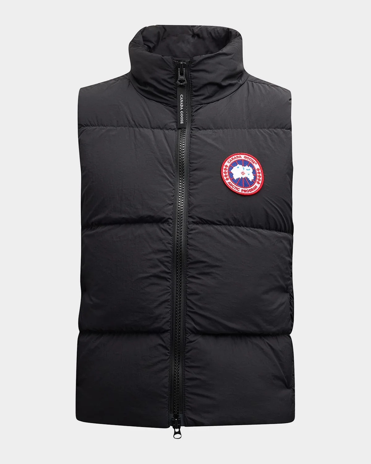 - Canada Goose "Lawrence" puffer vest made with recycled Enduraluxe, a water-repellant fabric with a durable soft-to-the-touch finish - TEI 1 is optimal for temperatures 40°F to 25°F; It is lightweight and adaptable for active pursuits - Structured down-filled collar - Sueded tricot chin-guard adds softness and comfort - Two-way front zipper for added range of motion and venting - Two exterior pockets: two zippered hand pockets - One interior pocket: zippered security pocket - Hem is longer in the back for added protection - Reflective double stripe grab strap on back - Nylon - Lining: Recycled polyester - Fill: Down/feather - Machine wash cold - Made in Canada - The Thermal Experience Index (TEI) is an easy-to-understand five point system that enables you to make an informed choice in your search to find the right parka, jacket, or knitwear for your specific environment and activity. It works using a scale, in which 1 indicates the lightest insulation--jackets, lightweight down for active pursuits--and 5 indicates the warmest parkas we make, the kind trusted in the world’s harshest conditions.