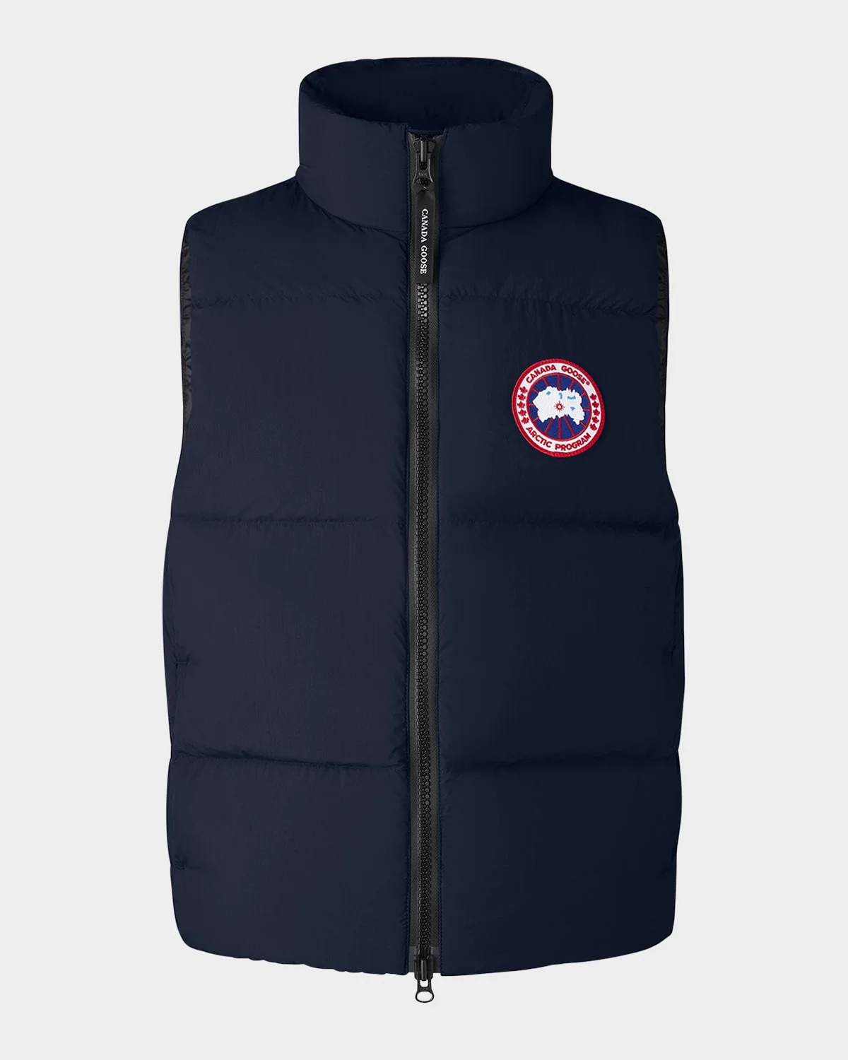 - Canada Goose "Lawrence" puffer vest made with recycled Enduraluxe, a water-repellant fabric with a durable soft-to-the-touch finish - TEI 1 is optimal for temperatures 40°F to 25°F; It is lightweight and adaptable for active pursuits - Structured down-filled collar - Sueded tricot chin-guard adds softness and comfort - Two-way front zipper for added range of motion and venting - Two exterior pockets: two zippered hand pockets - One interior pocket: zippered security pocket - Hem is longer in the back for added protection - Reflective double stripe grab strap on back - Nylon - Lining: Recycled polyester - Fill: Down/feather - Machine wash cold - Made in Canada - The Thermal Experience Index (TEI) is an easy-to-understand five point system that enables you to make an informed choice in your search to find the right parka, jacket, or knitwear for your specific environment and activity. It works using a scale, in which 1 indicates the lightest insulation--jackets, lightweight down for active pursuits--and 5 indicates the warmest parkas we make, the kind trusted in the world’s harshest conditions.