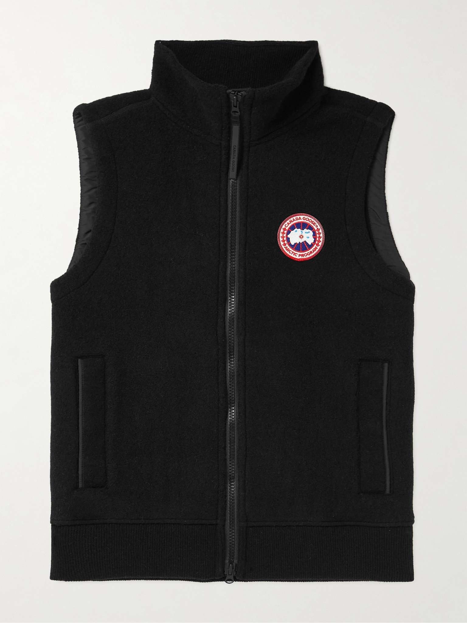 Canada Goose's 'Mersey' gilet is made from soft fleece blended with lots of recycled-wool and touches of Lyocell, so it's warm and breathable. It has a comfortable fit with a funnel neck and ribbed hem, which help to trap heat. The brand's 'Arctic Program' logo is appliquéd on the chest. Size & Fit - Fits true to size. Take your normal size - This gilet is designed for a regular fit - Ribbed hem - Mid-weight, slightly stretchy fabric - Model wears a M - Model measures: chest 38"/ 96cm, height 6'2"/ 188cm Details & Care - Black recycled wool-blend fleece - Two-way zip fastening - 62% recycled wool, 17% Lyocell, 13% polyester, 4% polyamide, 4% other fibres; trim: 67% recycled wool, 21% Lyocell, 10% polyamide, 1% elastane, 1% other fibres - Dry clean