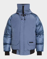 - Canada Goose "Paradigm Chilliwack" bomber jacket showcases an adjustable down-filled hood with a removable brim for optimal protection against the elements - Sueded tricot chin guard provides a soft touch - Two-way zip front - Webbing grab strap on the upper back with logo patch - Recycled Organic Arctic Tech® elbow patches for premium durability - Rib-knit hem and cuffs to lock in heat - Five exterior pockets: two hand warmer pockets, two lower pockets with flap closure, one utility and pen pocket on sleeve - Three interior pockets: two drop-in pockets, one zippered security pocket - Interior backpack straps allow hands-free carry - Down/feather fill - Polyester - Lining: Nylon - Made in Canada