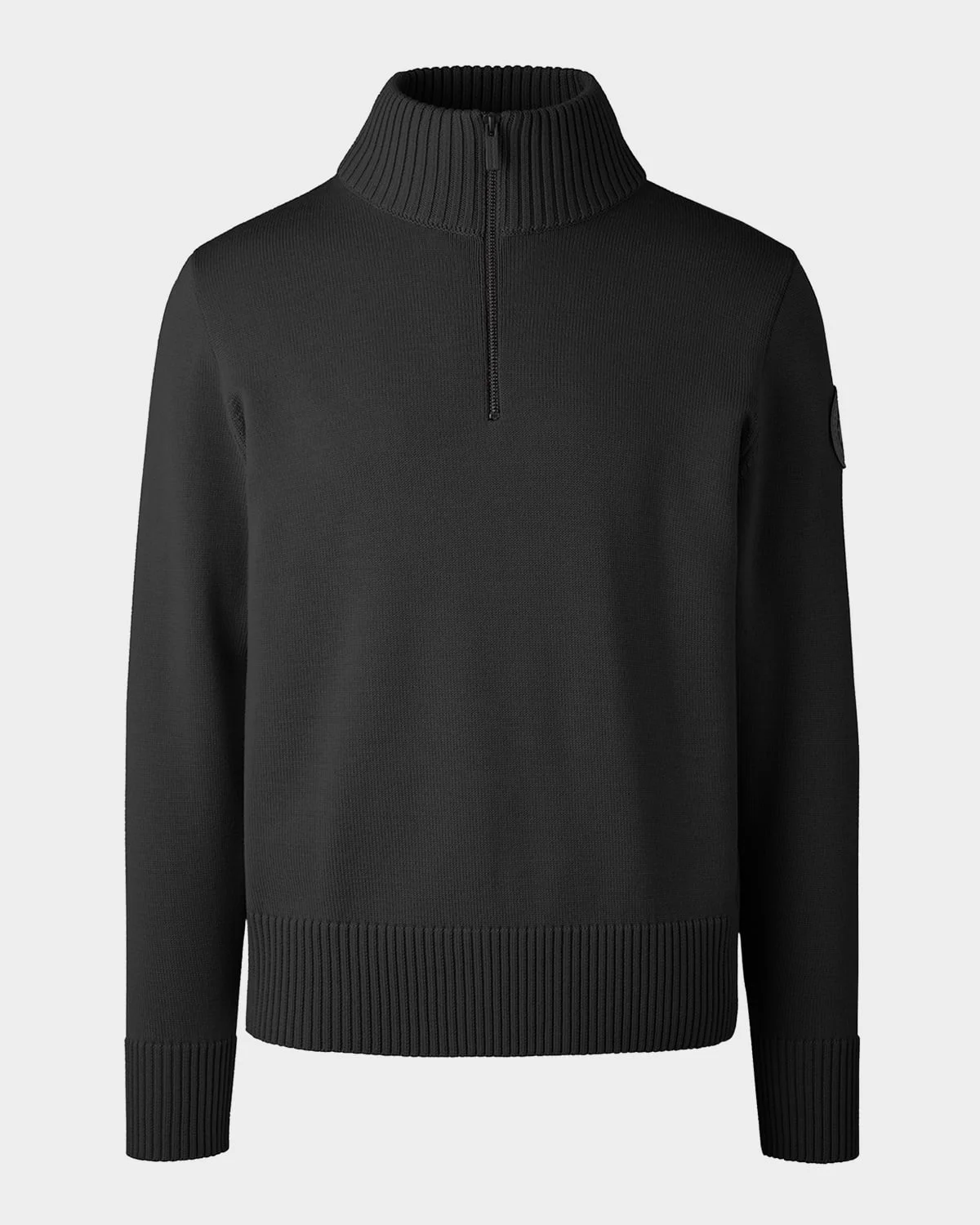 - Knit with breathable Merino Wool for its natural performance qualities, the Rosseau 1/4 zip actively keeps you warm when it's cool and cool when it's warm. - Canada Goose "Rosseau" sweater knit from breathable merino wool with natural performance qualities - Ribbed stand collar - Quarter-zip placket - Long sleeves - Ribbed cuffs and waistband - Pullover style - Made in Romania - Model is 6'1"/185cm.