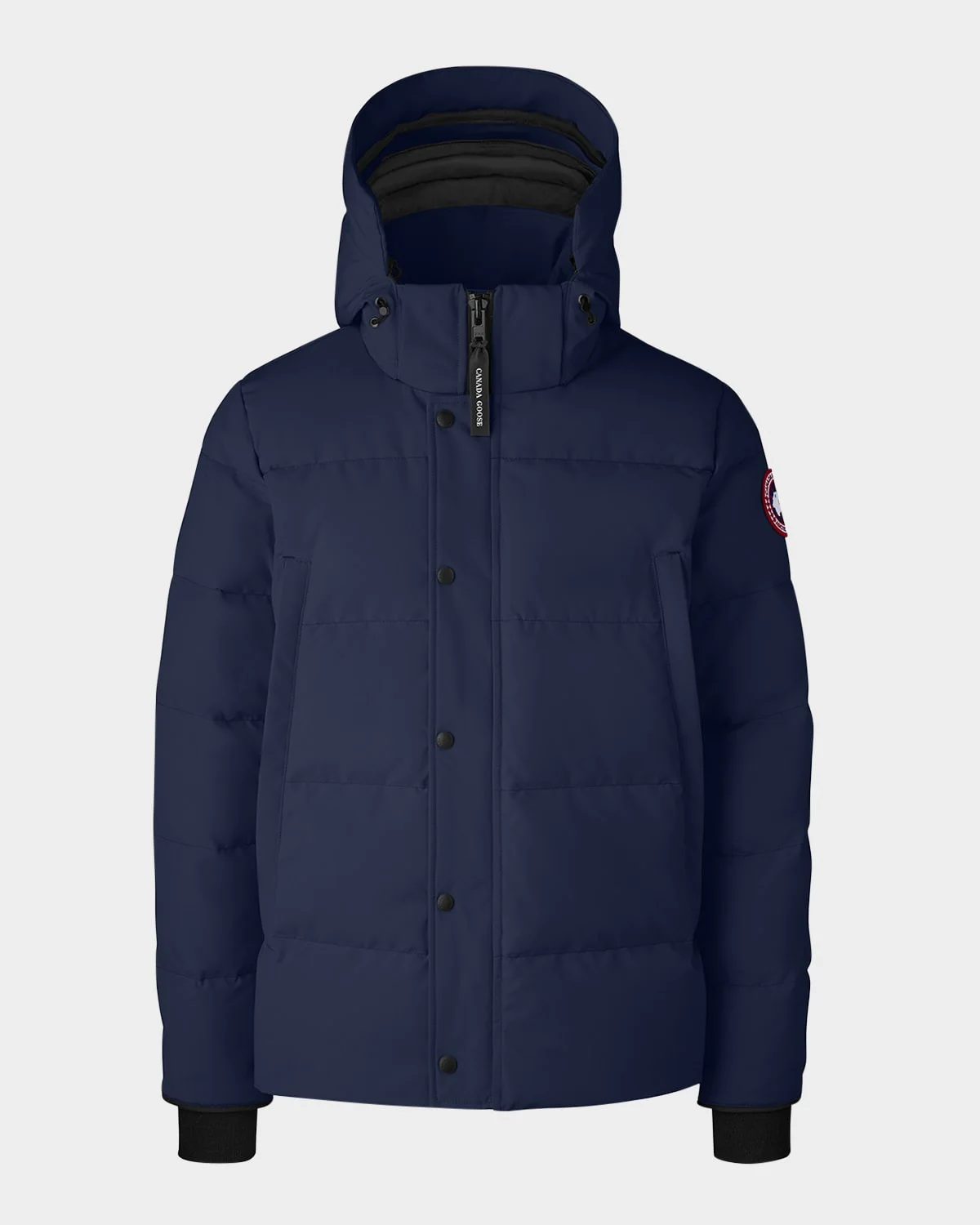 - Sleek interior hanging lining with backpack straps allows the jacket to be carried hands-free over the shoulders. The storm flap underneath the zipper adds a layer of protection. The sleeve cuffs are reinforced with CORDURA® fabric for added durability in high-abrasion areas. Includes 3 interior pockets: 1 security pocket with zipper closure, and 2 mesh drop-in pockets. - Canada Goose "Wyndham" solid parka with contrasting trim - TEI 3 is optimal for temperatures 15°F to -5°F; it is fundamental warmth fashioned for everyday use. - 625 fill-power responsibly sourced down - Removable hood; adjustable two ways - Tricot-lined chin guard for softness and comfort - Two-way zip closure with snap placket - Double-stacked handwarmer pockets with fleece lining - Slim-fitting silhouette - Recessed rib-knit cuffs add comfort and lock in heat - Polyester/cotton - Lining: Recycled nylon - Fill: Down/feathers - Made in Canada - The Thermal Experience Index (TEI) is an easy-to-understand five point system that enables you to make an informed choice in your search to find the right parka, jacket, or knitwear for your specific environment and activity. It works using a scale, in which 1 indicates the lightest insulation--jackets, lightweight down for active pursuits--and 5 indicates the warmest parkas we make, the kind trusted in the world’s harshest conditions.