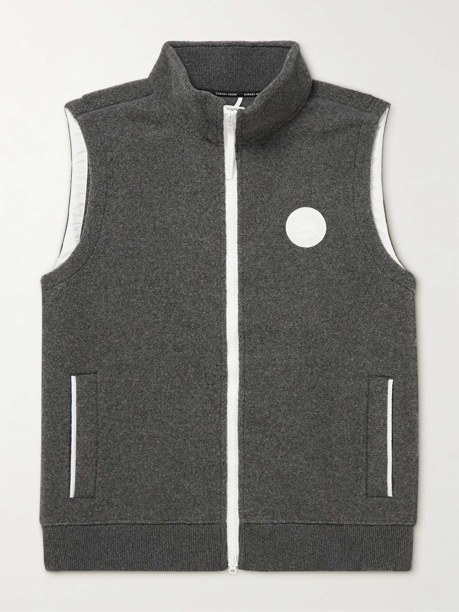 Canada Goose's 'Mersey' gilet is made from soft fleece blended with lots of recycled wool and touches of Lyocell, so it's warm and breathable. It has a comfortable fit with a funnel neck and ribbed hem, which help to trap heat. The brand's 'Arctic Program' logo is appliquéd on the chest. Size & Fit - Fits true to size. Take your normal size - The model is wearing a size larger to achieve a looser fit - This gilet is designed for a regular fit - Ribbed hem - Mid-weight, slightly stretchy fabric - Model wears a M - Model measures: chest 36"/ 92cm, height 6'2"/ 188cm Details & Care - Grey recycled wool-blend fleece - Zip fastening - 62% recycled wool, 18% Lyocell, 13% polyester, 7% polyamide - Dry clean