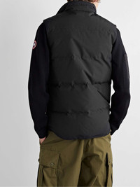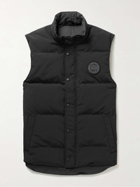 Every Canada Goose product is designed with purpose and informed by the rugged demands of the Arctic. Finished by hand, this 'Garson' shell gilet has a soft fleece-lined collar and is filled with down - the horizontal quilting ensures the padding is evenly distributed. Size & Fit - Fits true to size. Take your normal size - Designed for a regular fit - Padded, non-stretchy fabric - Model is shown wearing a M - Model measures: chest 38"/ 96cm, height 6'2"/ 188cm Details & Care - Black shell - Fleece-lined funnel neck, appliquéd designer emblem, two front welt pockets, internal pocket, fully lined - Two-way zip and snap fastenings - 84% polyester, 16% cotton; filling: 80% down, 20% feathers (Duck); lining: 100% nylon - Dry clean