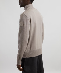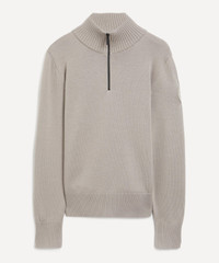 DETAILS Rosseau jumper Fine merino wool knit Regular fit High collar Quarter zip placket 5°C to -5°C Rib-knit collar, cuffs and hem Tonal logo patch at sleeve SIZE & FIT Model is 186cm/6'1"; Chest: 92cm; Waist: 71cm and wears a size M COMPOSITION & CARE 100% Fine Merino Wool Dry clean only