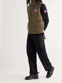 Canada Goose updates its popular 'Freestyle' gilet with a slimmer cut in this 'Crew' version. Designed for lightweight warmth, it's made from durable, water and wind-resistant Arctic Tech and quilted to keep the insulating down fill evenly distributed around your core. The stand collar is lined in soft microfibre for comfort, while six front pockets and two inside provide plenty of storage. Size & Fit - Fits true to size. Take your normal size - This gilet is designed for a slim fit - Padded, non-stretchy fabric - Model wears a M - Model measures: chest 38"/ 96cm, height 6'2"/ 188cm Details & Care - Army-green Arctic Tech - Stand collar, appliquéd designer emblem, four front patch pockets, two front slash pockets, two internal pockets, fully lined - Two-way zip and snap fastenings - 85% polyester, 15% cotton; filling: 80% down, 20% feather (Duck); padding: 100% polyester; lining: 100% nylon - Dry clean