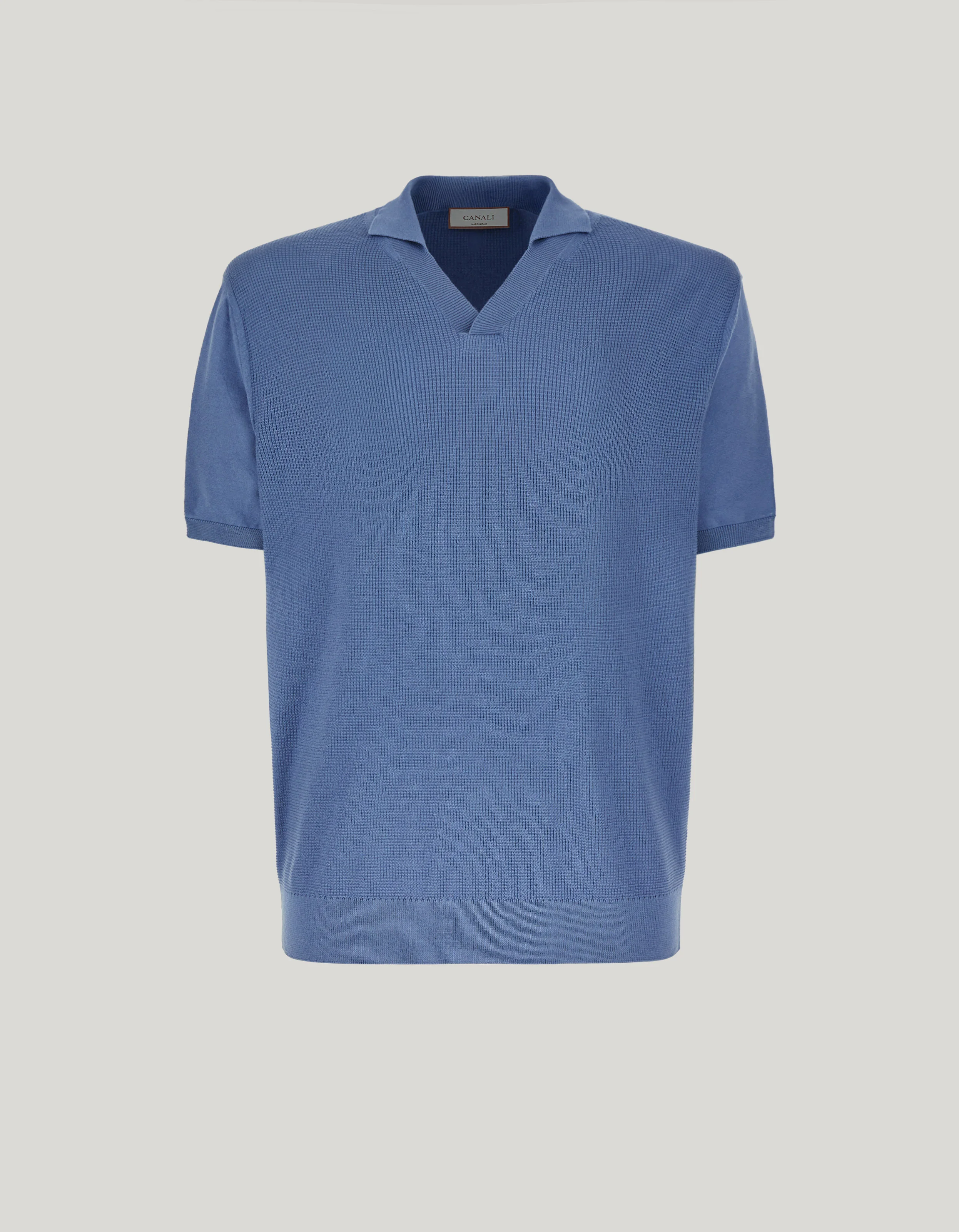 Short-sleeved polo shirt in a refined and practical style. Made from a fine cotton and silk blend, it has a delicate micro-texture on the body and shaved sleeves. In addition to the fine materials, the polo shirt excels in versatility, guaranteeing extreme comfort. A must-have garment for men seeking a combination of elegance and practicality. FABRICS AND CRAFTSMANSHIP - Short-sleeved open-collar polo shirt - Ribbed collar, hem and cuffs - Structured and shaved - 18 gauge - 80% cotton, 20% silk - Made in Italy CARE Hand wash max 40° Do not bleach Normal steam or dry iron on low (110°) Gentle dry clean with perchlorethylene Dry flat FIT The model is wearing a size 50 The model measures: Height: 185 cm (72.8 in) Chest: 100 cm (39.4 in) Waist: 79 cm (31.1 in) Hips: 95 cm (37.4 in)