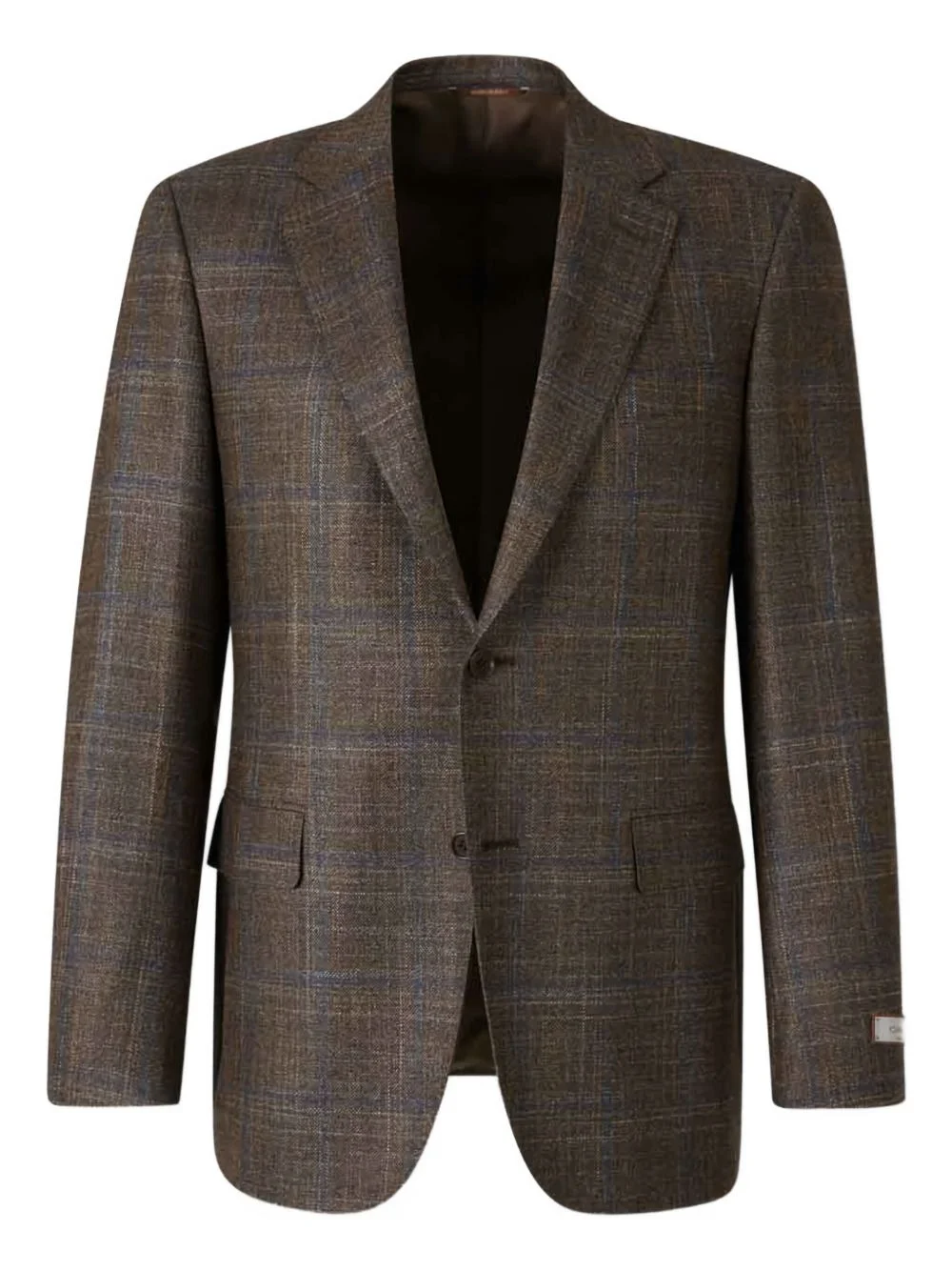 single-breasted checked blazer Highlights - Brown - Checked pattern - Button fastening - Notched lapels - Buttoned cuffs - Straight hem Imported Composition Wool 100% Washing instructions Read Manufacturer Guidelines
