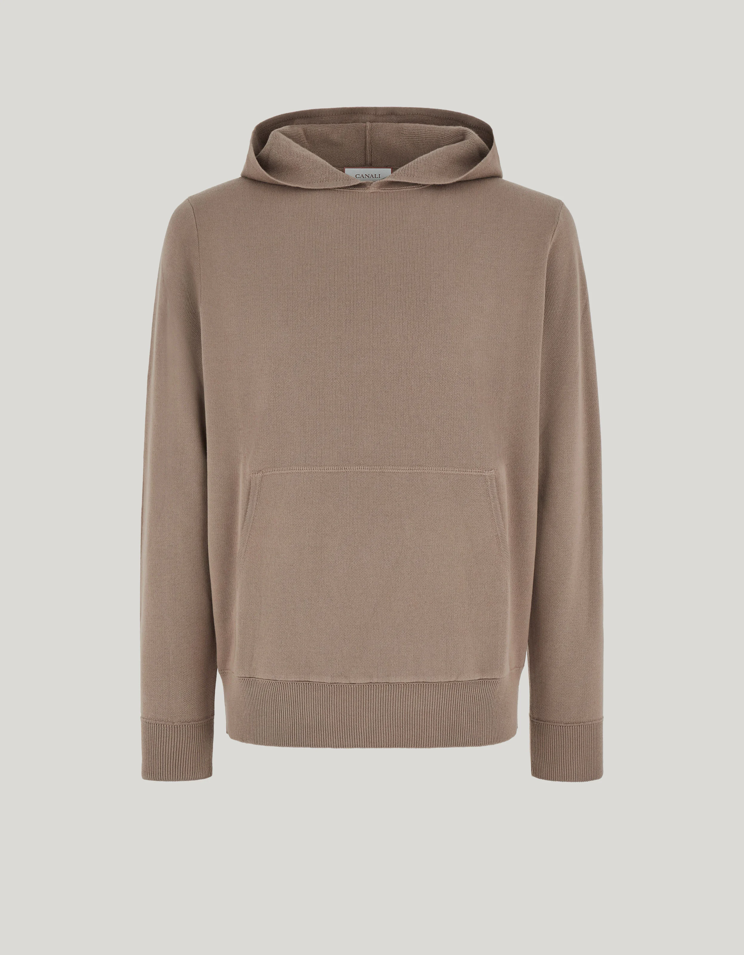 Cotton-modal hooded sweatshirt designed to accompany men's everyday wear with casual style. The micro-structured fabric enhances the design without sacrificing comfort, while the pouch pockets and the tag on the back add functional and neat details. A versatile and refined piece, ideal for those who want to combine practicality and sophistication in the most dynamic moments of the day. FABRICS AND CRAFTSMANSHIP - Long sleeved hooded sweatshirt - Ribbed hem and cuffs - Micro-structured - 12 gauge - 50% cotton 50% modal - Made in Italy CARE Hand wash max 40° Do not bleach Normal steam or dry iron on low (110°) Gentle dry clean with perchlorethylene Dry flat FIT The model is wearing a size 48 The model measures: Height: 189 cm (74.4 in) Chest: 98 cm (38.6 in) Waist: 82 cm (32.3 in) Hips: 97 cm (38.2 in)