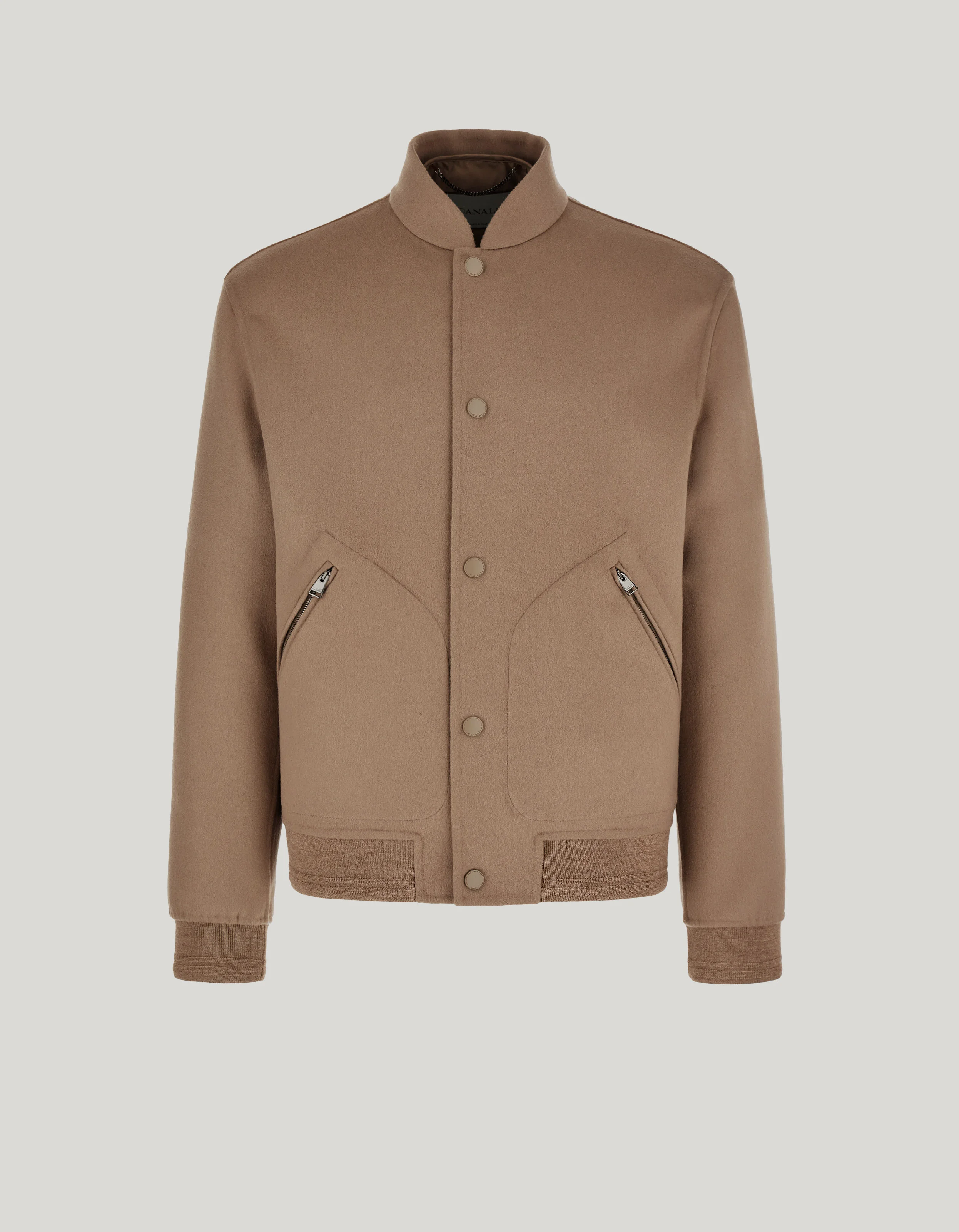 A 3-in-1 bomber jacket in fine Double wool and cashmere, enhanced by a quilted technical fabric inner vest. Designed for everyday needs, it is a versatile recommendation that combines impeccable workmanship and contemporary comfort, ideal in any context. FABRICS AND CRAFTSMANSHIP - Set-in sleeve bomber jacket - Central fastening with tone-on-tone snap buttons - Zippered hand pockets - Knit cuffs and hem - Hand-stitched - Unlined piece - Patch pocket - Quilted technical fabric inner vest - 90% Wool 10% Cashmere - Made in Italy CARE Do not wash with water Do not bleach Normal steam or dry iron on low (110°) Gentle dry clean with perchlorethylene Do not tumble dry FIT The model is wearing a size 48 The model measures: Height: 189 cm (74.4 in) Chest: 98 cm (38.6 in) Waist: 82 cm (32.3 in) Hips: 97 cm (38.2 in)
