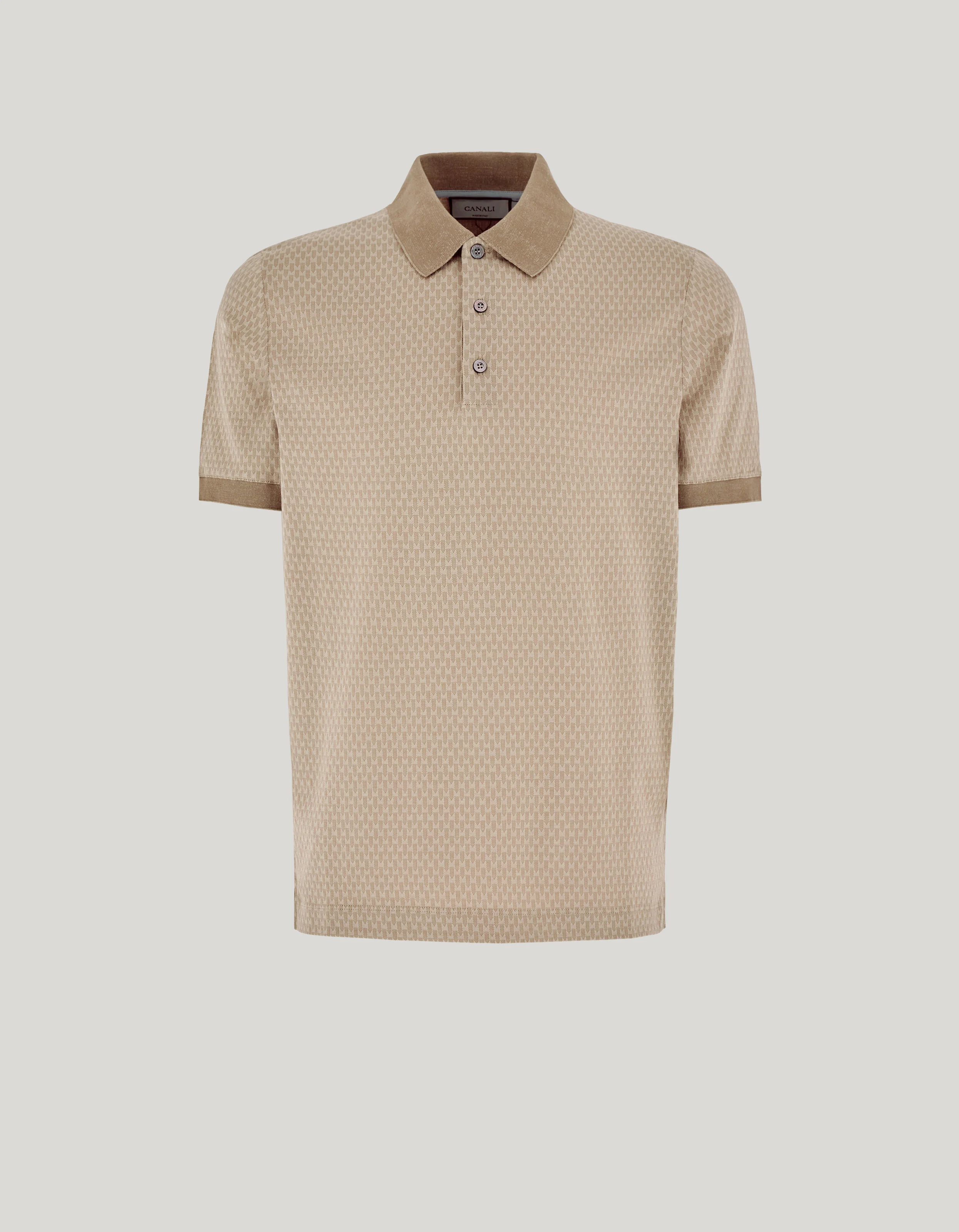 This pure lisle cotton polo shirt expresses casual elegance and is perfect for a contemporary look. The design is distinguished by the sophisticated two-tone micro jacquard on the collar and sleeve edges, a unique detail that enhances the style. The ultimate versatile piece, suitable for both casual and formal occasions. FABRICS AND CRAFTSMANSHIP - Short sleeved 3 button polo shirt - Sail collar and sleeves in basic fabric - Side slits - 100% cotton - Made in Italy CARE Machine wash max 30° - delicate cycle Do not bleach Normal steam or dry iron on low (110°) Dry clean with perchlorethylene Do not tumble dry FIT The model is wearing a size 50 The model measures: Height: 185 cm (72.8 in) Chest: 100 cm (39.4 in) Waist: 79 cm (31.1 in) Hips: 95 cm (37.4 in)