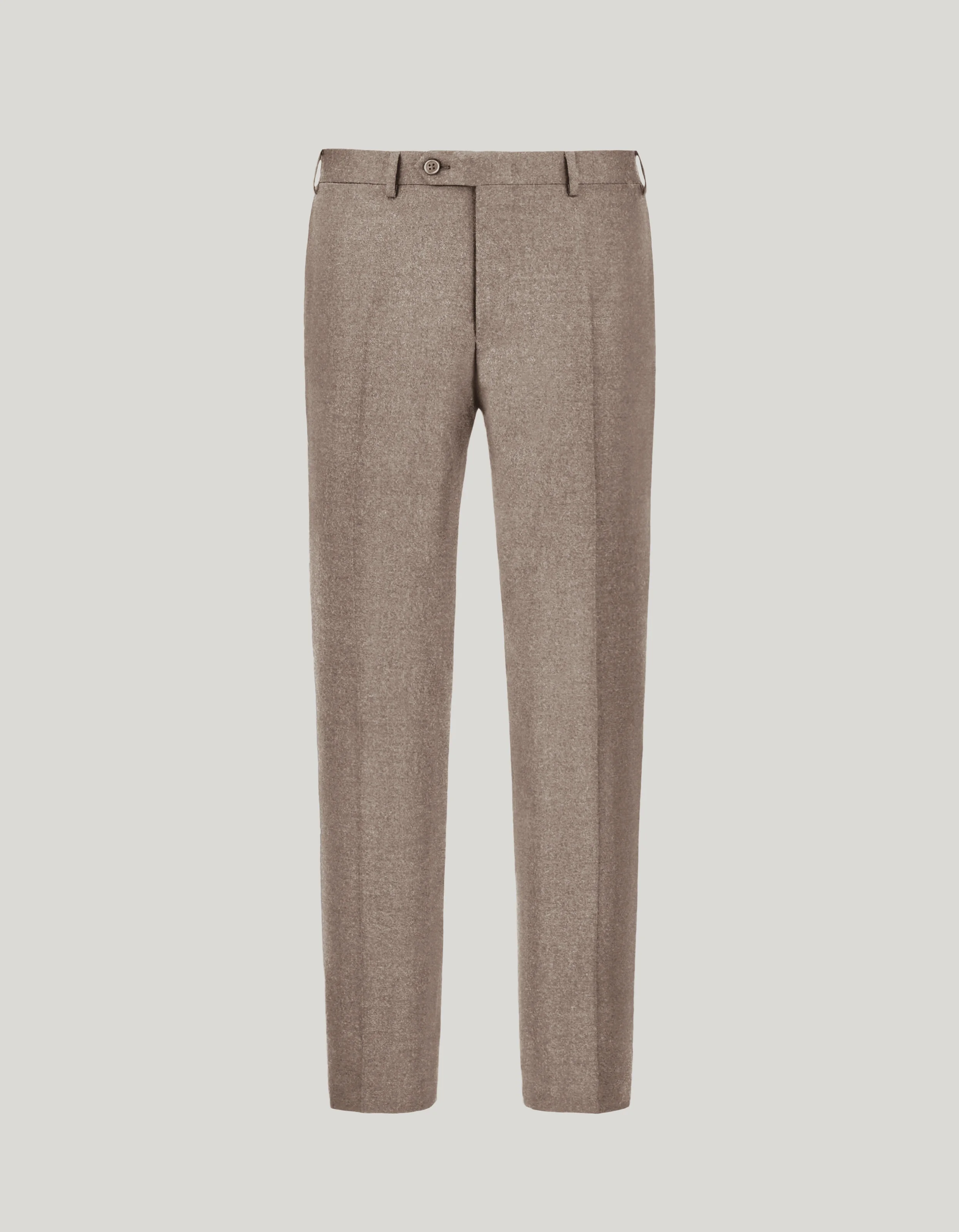 Pure wool flannel pants constructed with the comfortable lines of a regular fit. The refined colouring lends sophistication to an essential design with slanted pockets and without darts. Perfect for the man who wants to infuse every look with elegance. FABRICS AND CRAFTSMANSHIP - Flat-front pants - Slant pockets and two rear welt pockets - Hem: 19.5 cm - 100% wool - Made in Italy CARE Do not wash with water Do not bleach Normal steam or dry iron on low (150°) Dry clean with perchlorethylene Do not tumble dry FIT Regular Fit The model is wearing a size 48 The model measures: Height: 186 cm (73.2 in) Chest: 81 cm (31.9 in) Waist: 70 cm (27.6 in) Hips: 82 cm (32.3 in)