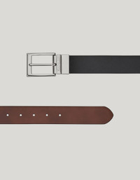 Belt in calfskin with Saffiano print and smooth calfskin, combining the lines of a rectangular buckle with a practical essence. Adjustable and reversible, in two-tone colours, it enhances the formal looks of today's man. FABRICS AND CRAFTSMANSHIP - Belt in Saffiano print calfskin and smooth calfskin - Rectangular buckle H 3.5 cm with polished silver finish - Adjustable - Reversible - Cowhide - Made in Italy