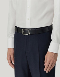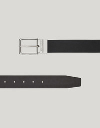 Smooth, Palmellato calfskin belt enhanced by a rectangular buckle with a shiny silver finish. Adjustable and reversible, it combines a functional essence with an elegant colour scheme to enhance autumn-winter business outfits with personality. FABRICS AND CRAFTSMANSHIP - Belt in Palmellato print calfskin and smooth calfskin - Rectangular buckle H 3.5 cm with polished silver finish - Adjustable - Reversible - Cowhide - Made in Italy