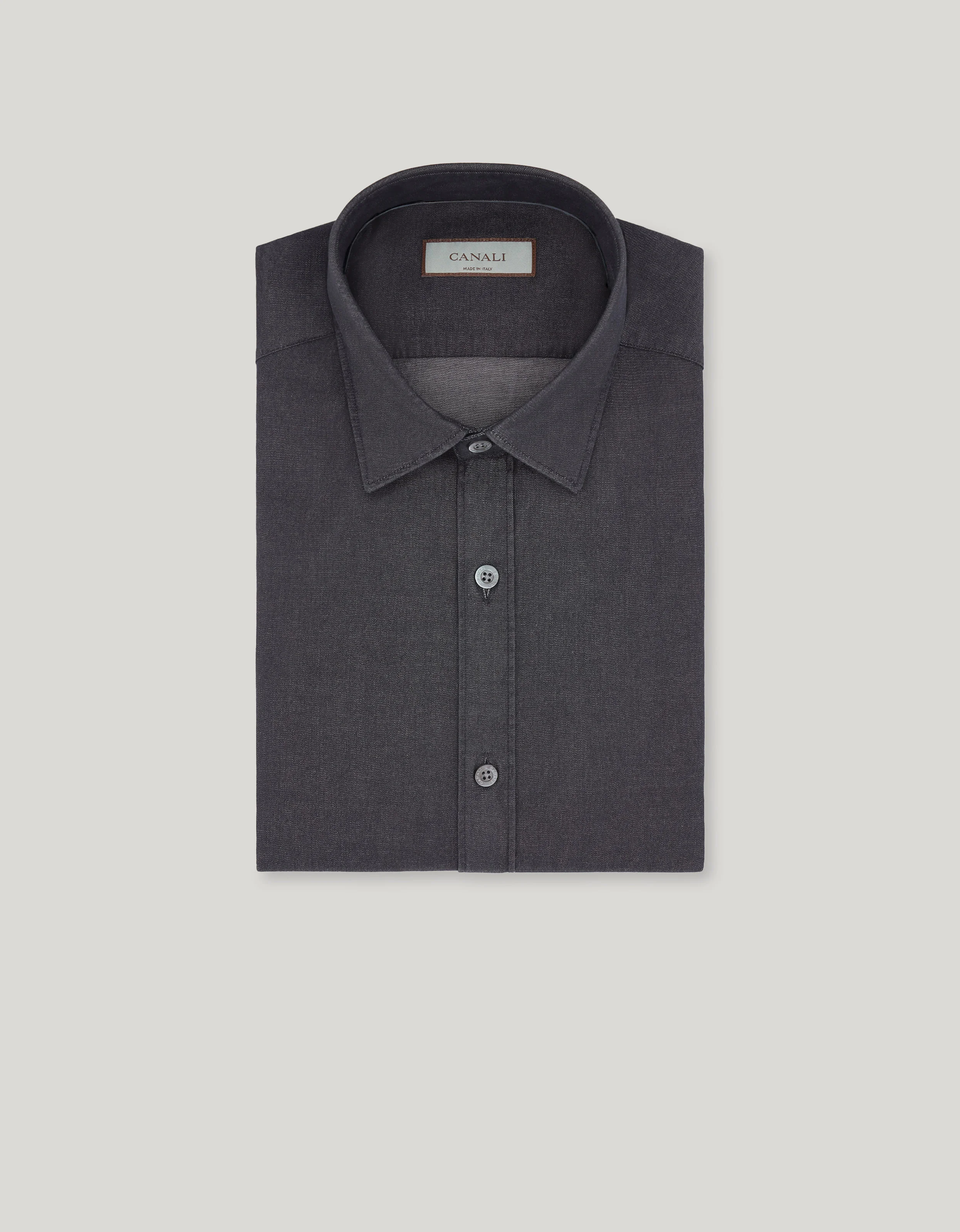 Denim shirt with a casual appeal, characterized by the regular fit cut that ensures comfort by perfectly following the lines of the body. The collar lends character to any outfit, making the shirt ideal for both leisure time and important dates. The refined stretch cotton fabric promises exceptional strength and slight stretch, while ensuring impeccable style and a feeling of lasting comfort. An essential piece for the wardrobe of those who seek elegance and practicality. FABRICS AND CRAFTSMANSHIP - Casual shirt - Narrow pointed collar - Collar height 4 cm - Front with placket - 98% Cotton 2% Elastane - Denim 5 OZ - Made in Italy CARE Machine wash max 30° - delicate cycle Do not bleach Normal steam or dry iron on low (110°) Gentle dry clean with perchlorethylene Do not tumble dry FIT Regular fit The model is wearing a size 48 The model measures: Height: 186 cm (73.2 in) Chest: 81 cm (31.9 in) Waist: 70 cm (27.6 in) Hips: 82 cm (32.3 in)